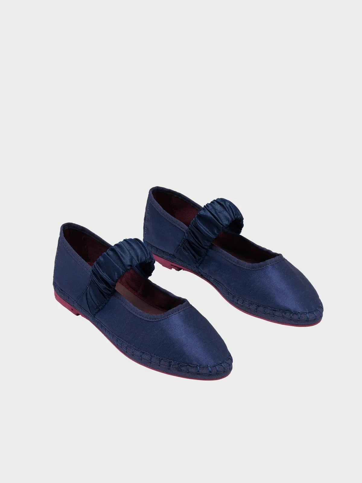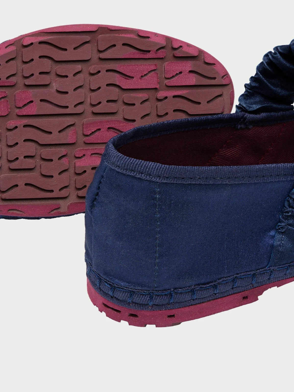 Mafalda in Blue is expertly crafted with 100% cotton velvet, organic cotton lining, and a recycled rubber sole. Its elegant navy design, silk piping, and lace make it both comfortable and stylish. Enjoy anti-bacterial protection and sustainable fashion with this silk mafalda.
