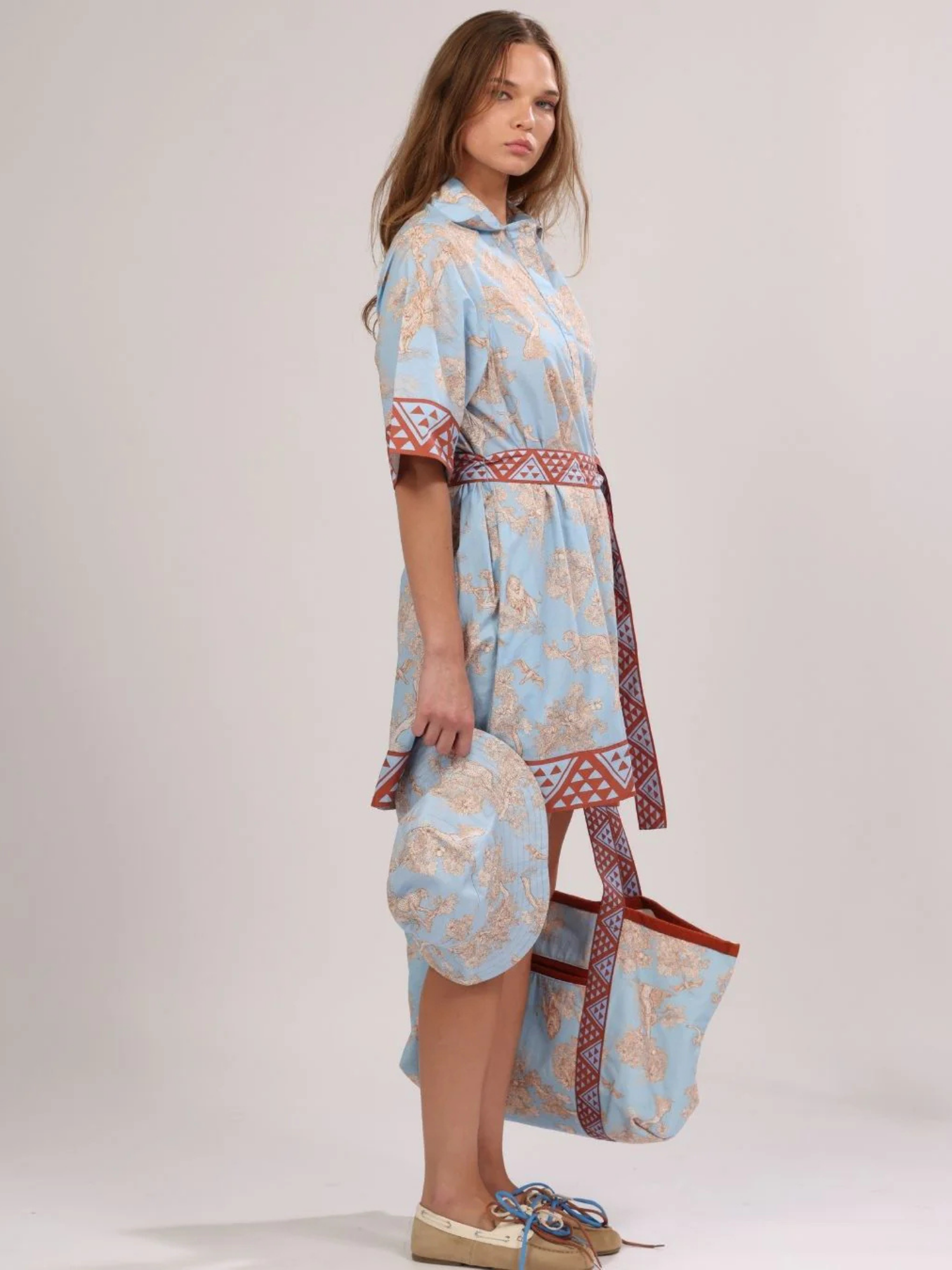 Africa Light Blue Poplin Short Dress