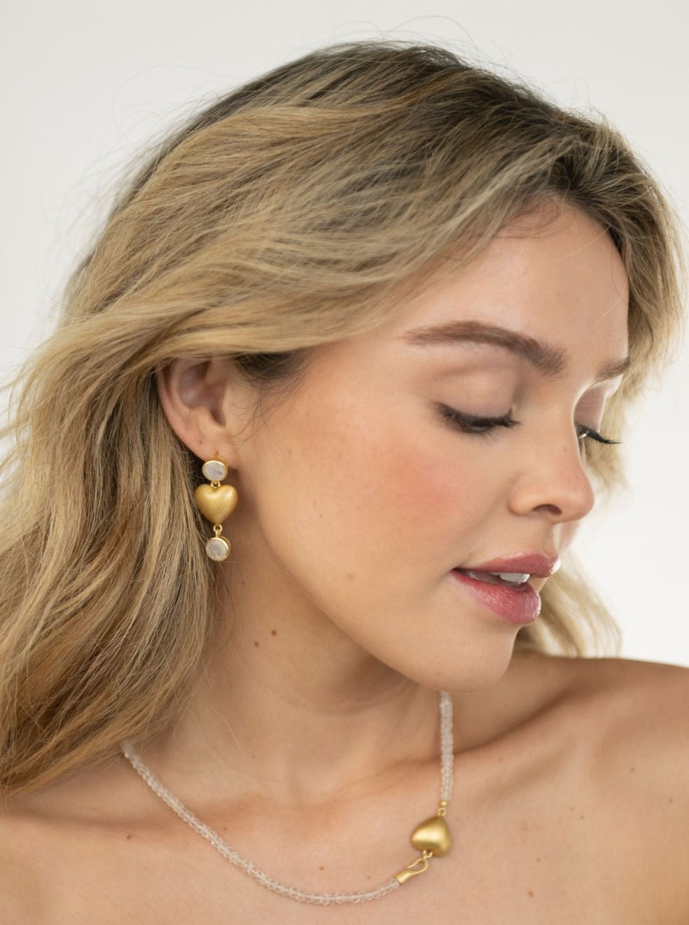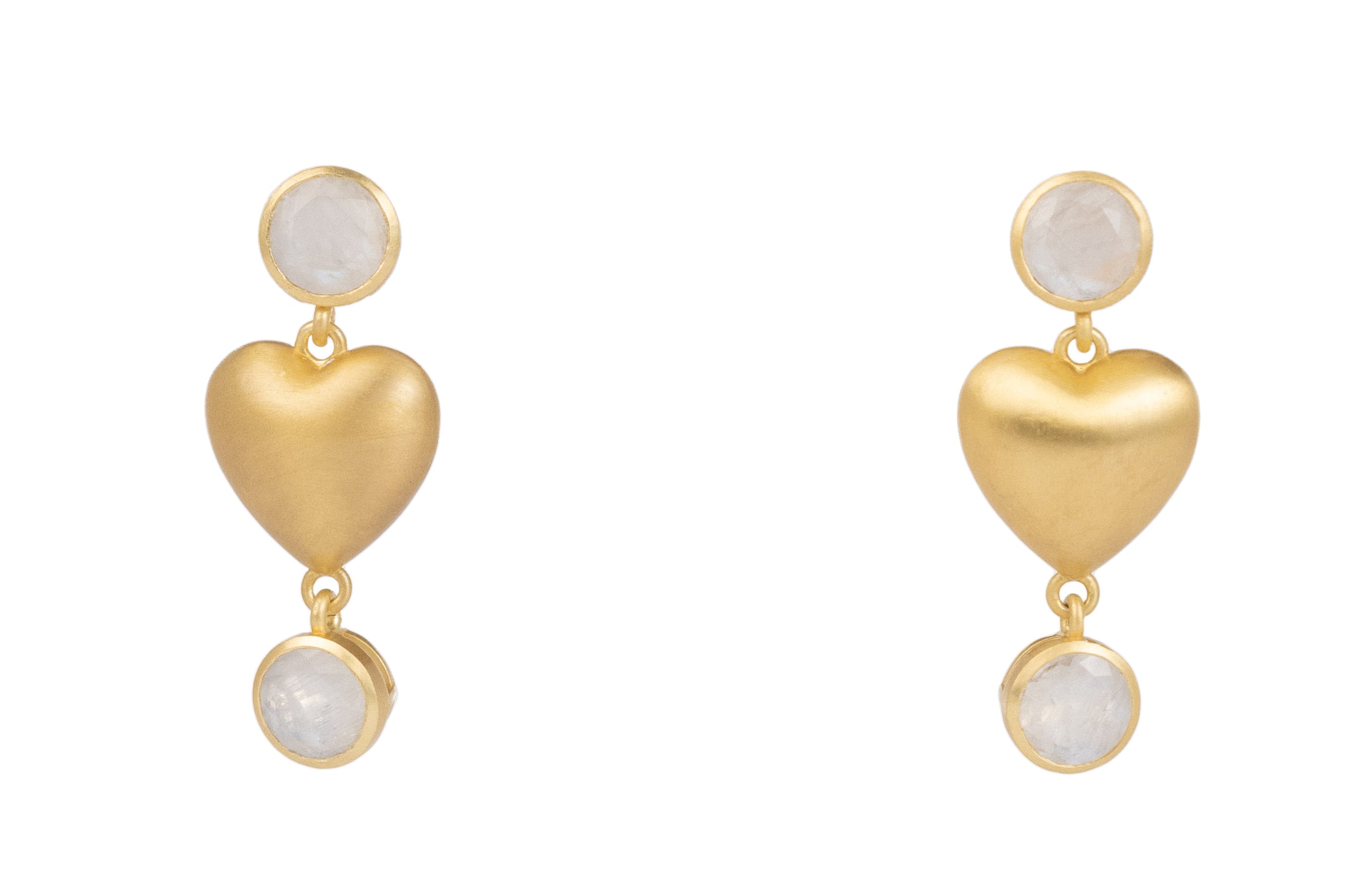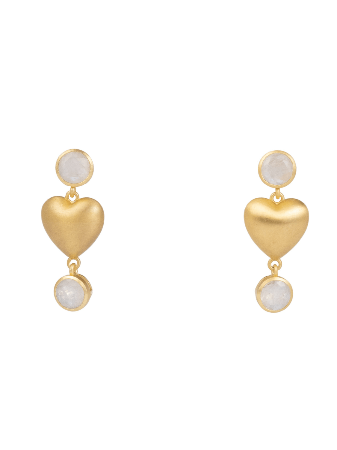 Celebrate love in style with our charming Heart Earrings – a harmonious blend of playfulness and elegance. These exquisite earrings boast two captivating shimmering rainbow moonstones delicately linked by an 18K gold-plated heart, making them the ultimate choice to elevate your outfit, whether it's for a romantic date night or a girls night out (or in!).
