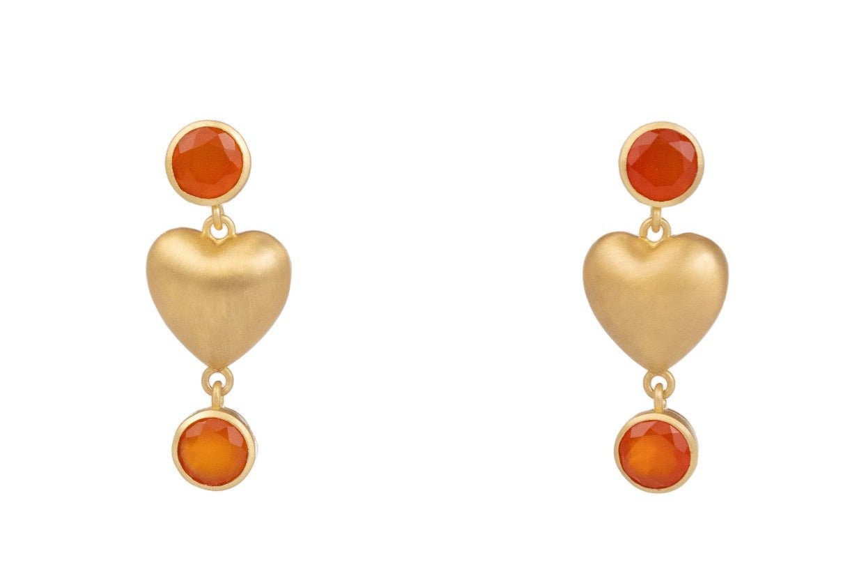 Celebrate love in style with our charming Heart Earrings – a harmonious blend of playfulness and elegance. These exquisite earrings boast two captivating shimmering red onyx stones delicately linked by an 18K gold-plated heart, making them the ultimate choice to elevate your outfit, whether it's for a romantic date night or a girls night out (or in!).