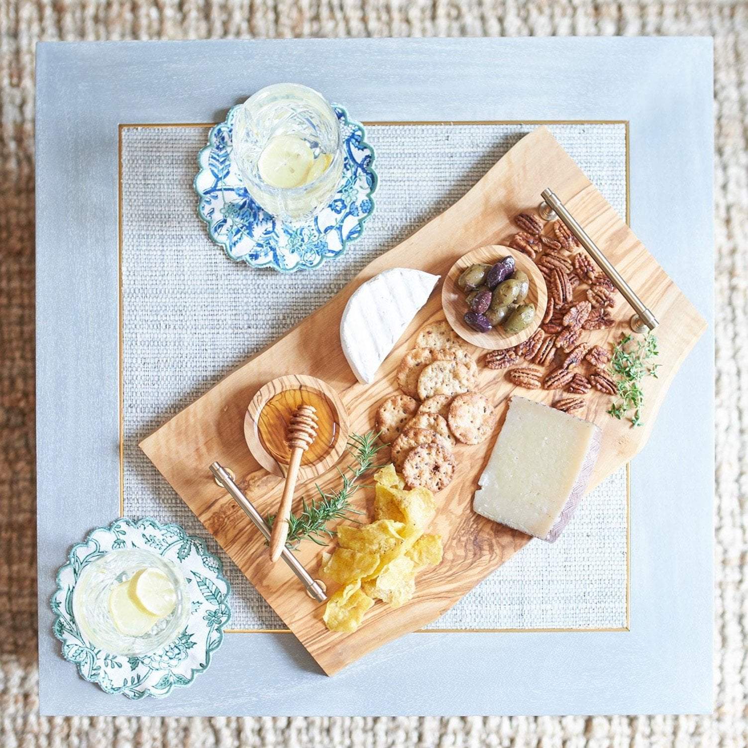 Some species live for over a thousand years because the olive tree is not often harvested for lumber, but rather for its fruit. Our olive wood is sourced from the Calabria Region in southern Italy; then kiln dried in central Pennsylvania. Once dried, the wood is shipped to Connecticut where my dad cuts it to size, chisels out old bark, and hand-sands and burnishes it to finish.