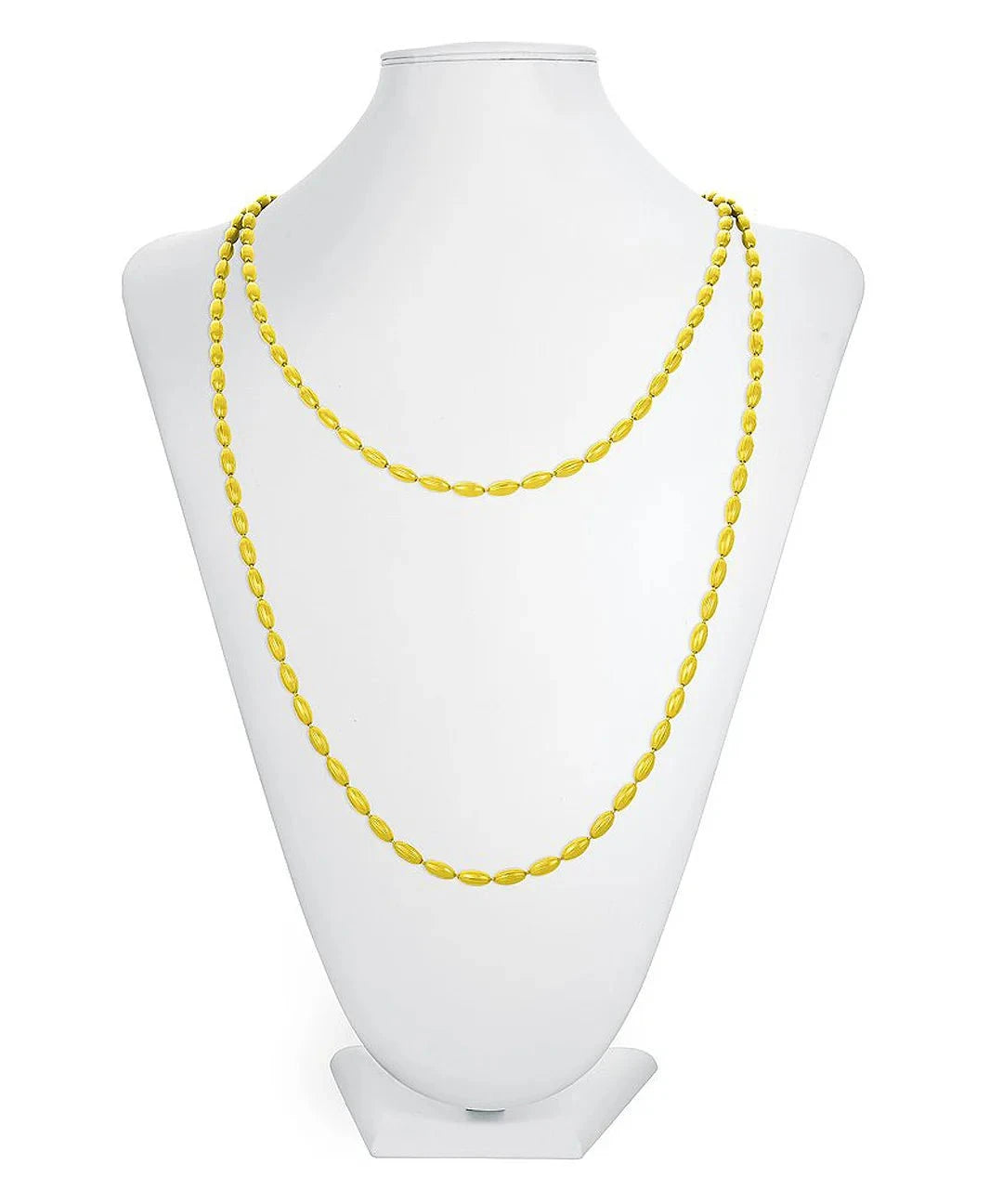 Candy Shop Vintage signature Charleston Rice Bead necklace in a versatile 5' length. These textured chains are a revival of a vintage, flapper style necklace that can be worn doubled, tripled or layered together with other colors and finishes. Brass chain with an eco-friendly, powder coated finish. Trade them, share them and give them away - a bit of Southern Charm for everyone, everywhere and a fashion staple in Charleston and beyond.