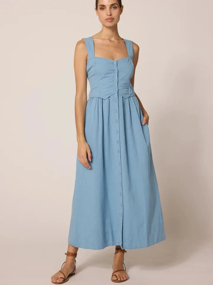 Esther Ankle Dress in Dusty Blue
