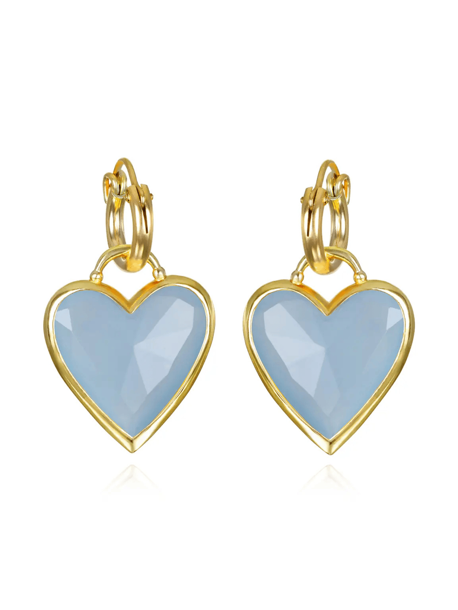 These earrings make a real statement! They're made of heart-shaped blue jade framed for an elevated, luxe look. The huggie style means they'll hug your ear lobes perfectly for a trendy, edgy vibe.