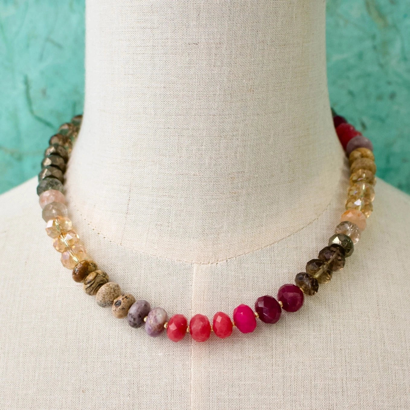 Wine Multi Gemma Large Mixed Rondelle Necklace