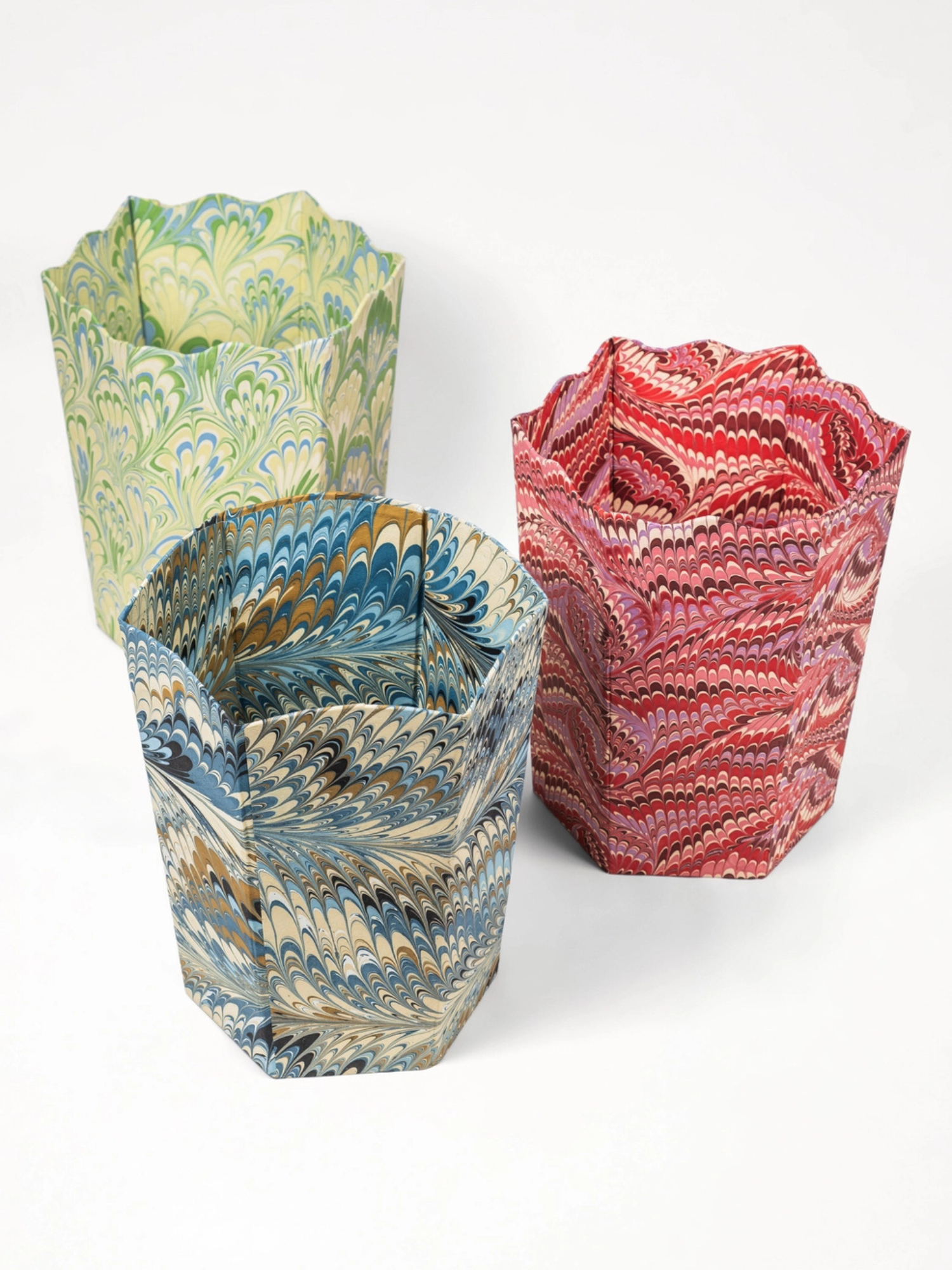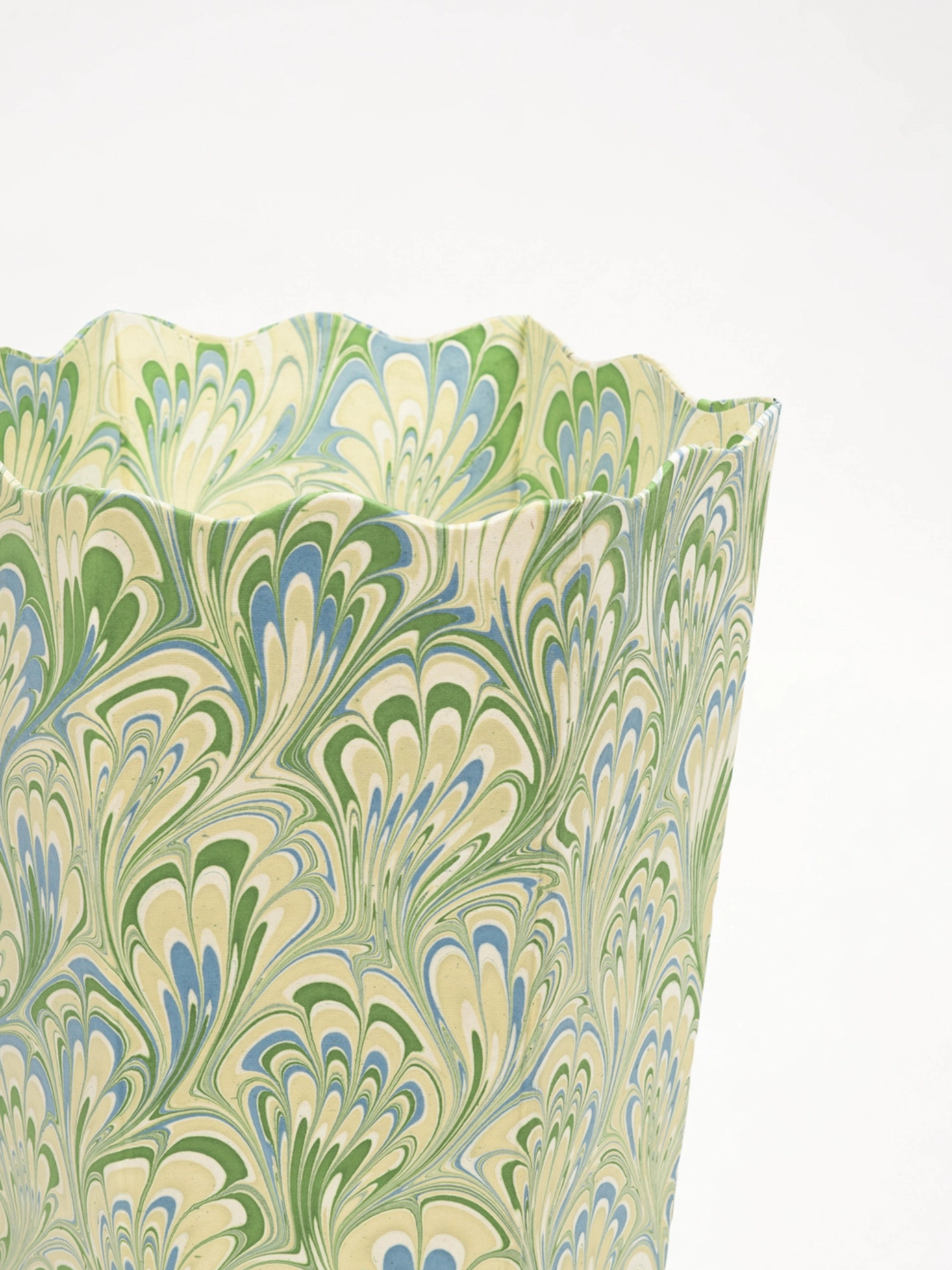 Perfectly versatile, this bin is as functional as it is beautiful—ideal for tidying up a room as a waste bin or repurposing as stylish storage for magazines, toys, or craft supplies. The scalloped edges lend a playful touch, while the marbled finish adds an elegant touch of color to any room.