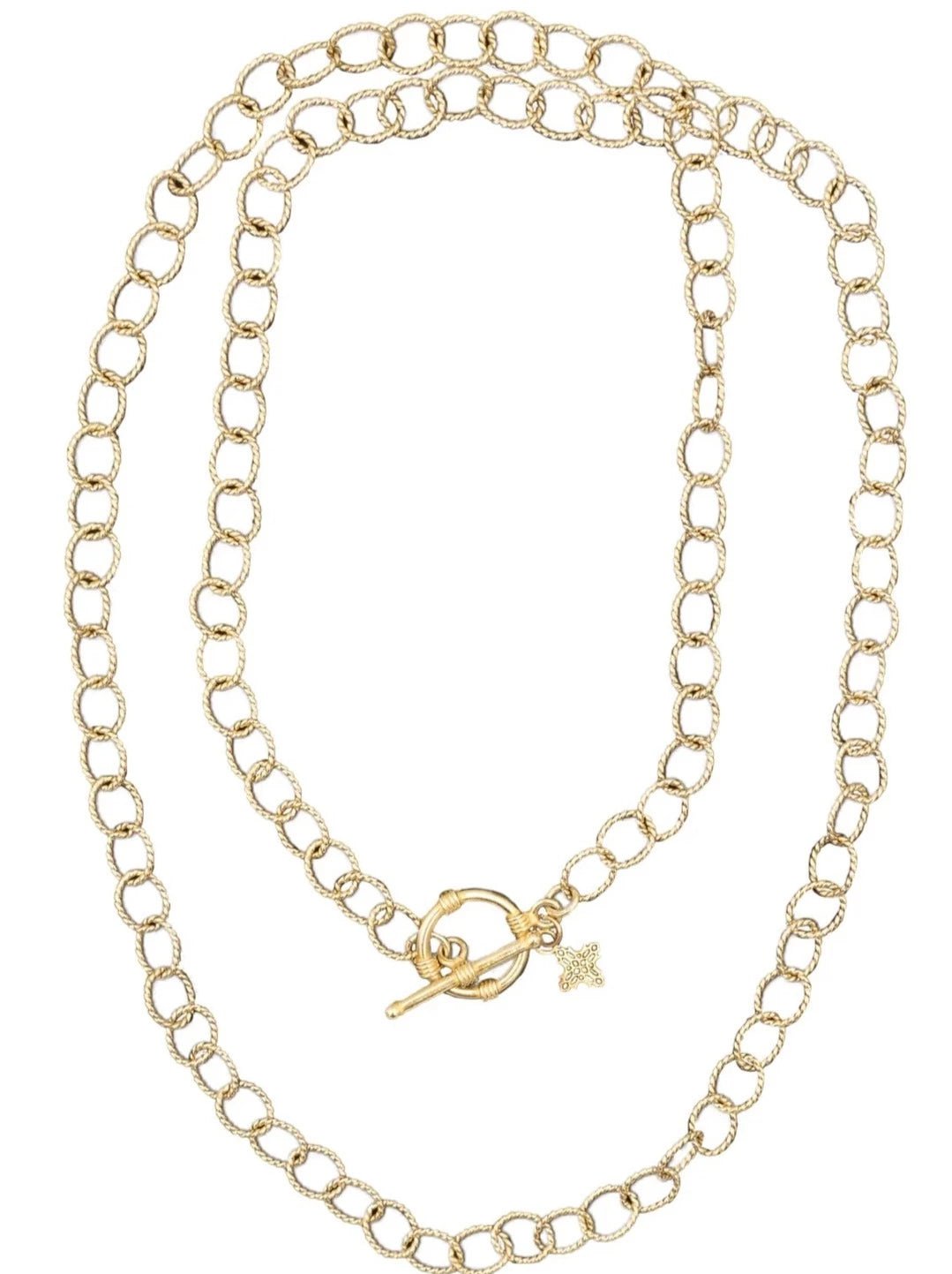 The Cecilia Necklace is sure to be a fan favorite! The 14k gold over brass chain is a fresh take on a classic chain necklace. We love the versatility of this piece. It can be doubled or worn long for any outfit!