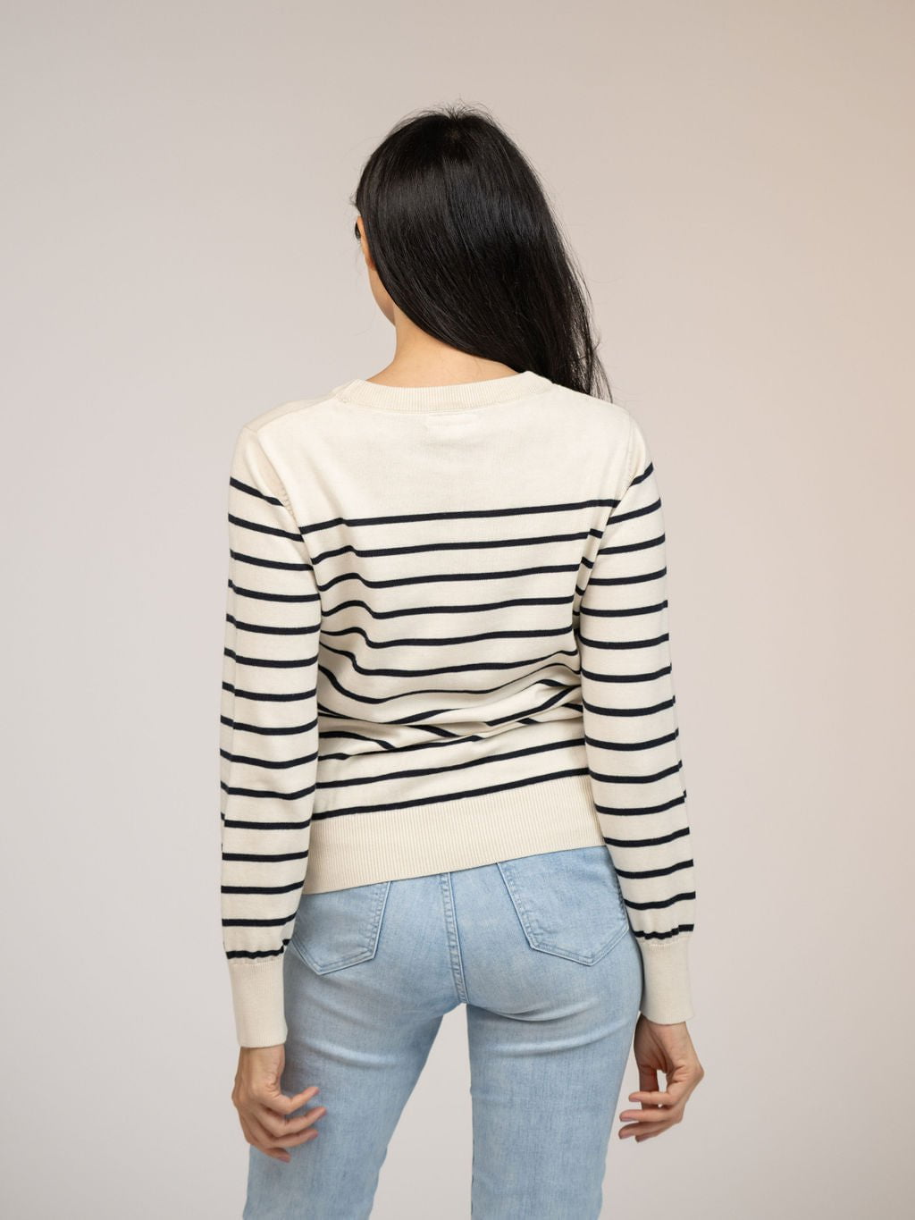 Ivory Striped Sweater with Nantucket Island Embroidery