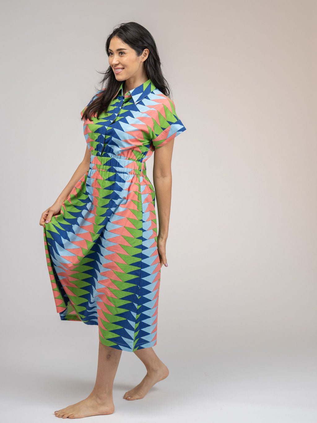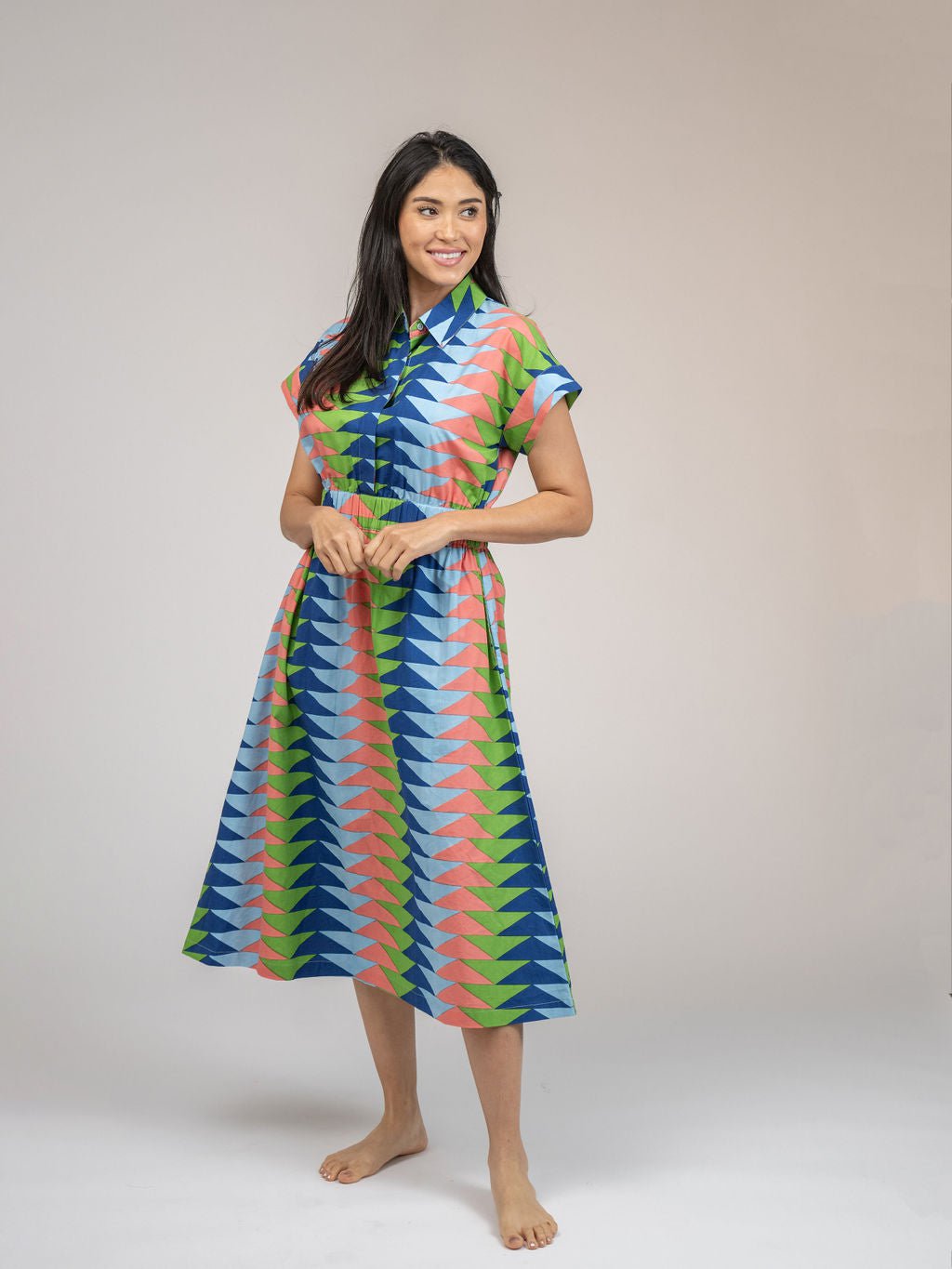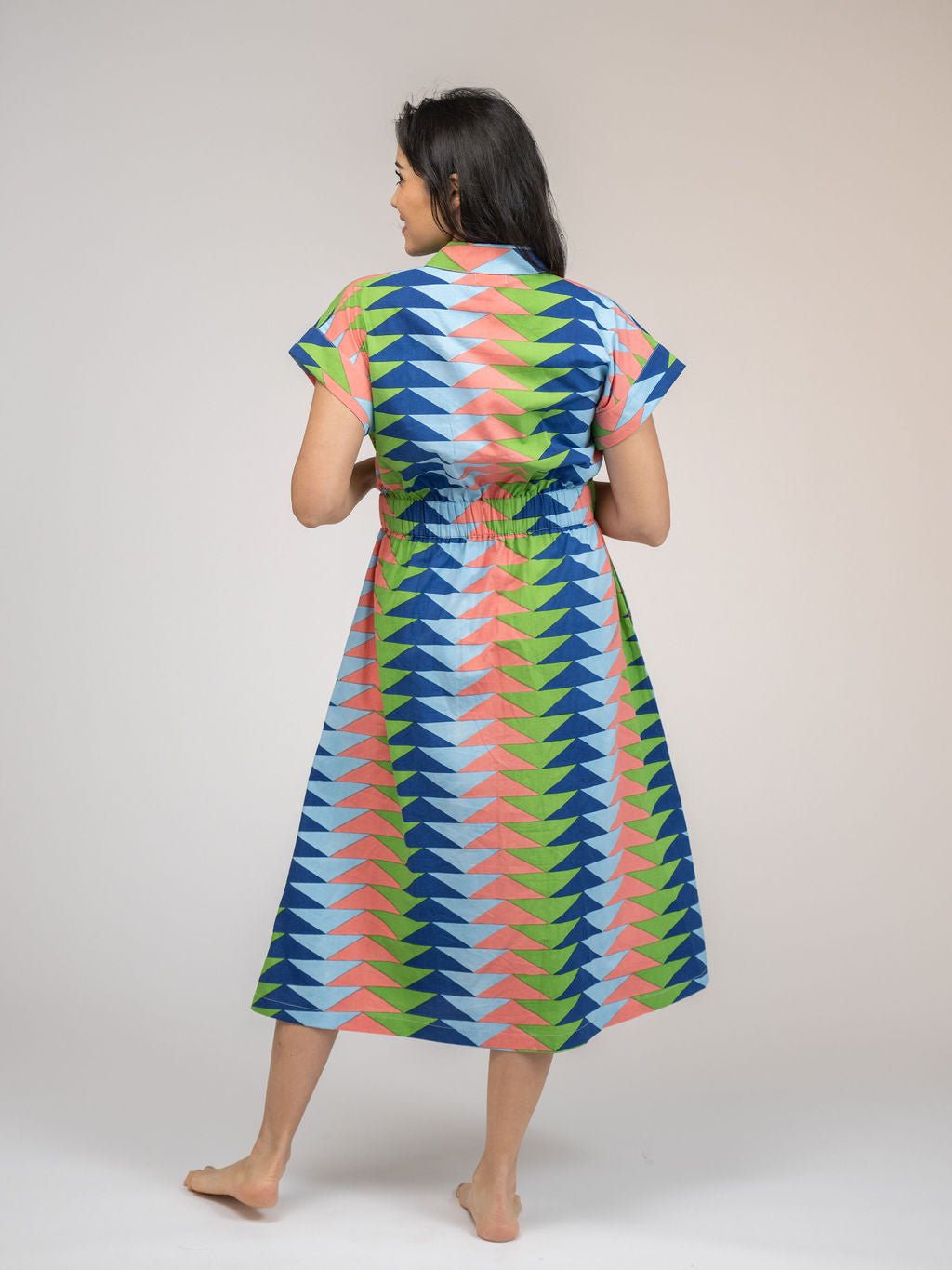 The Lisa Dress | Tropical Blockprint Bagru Triangle