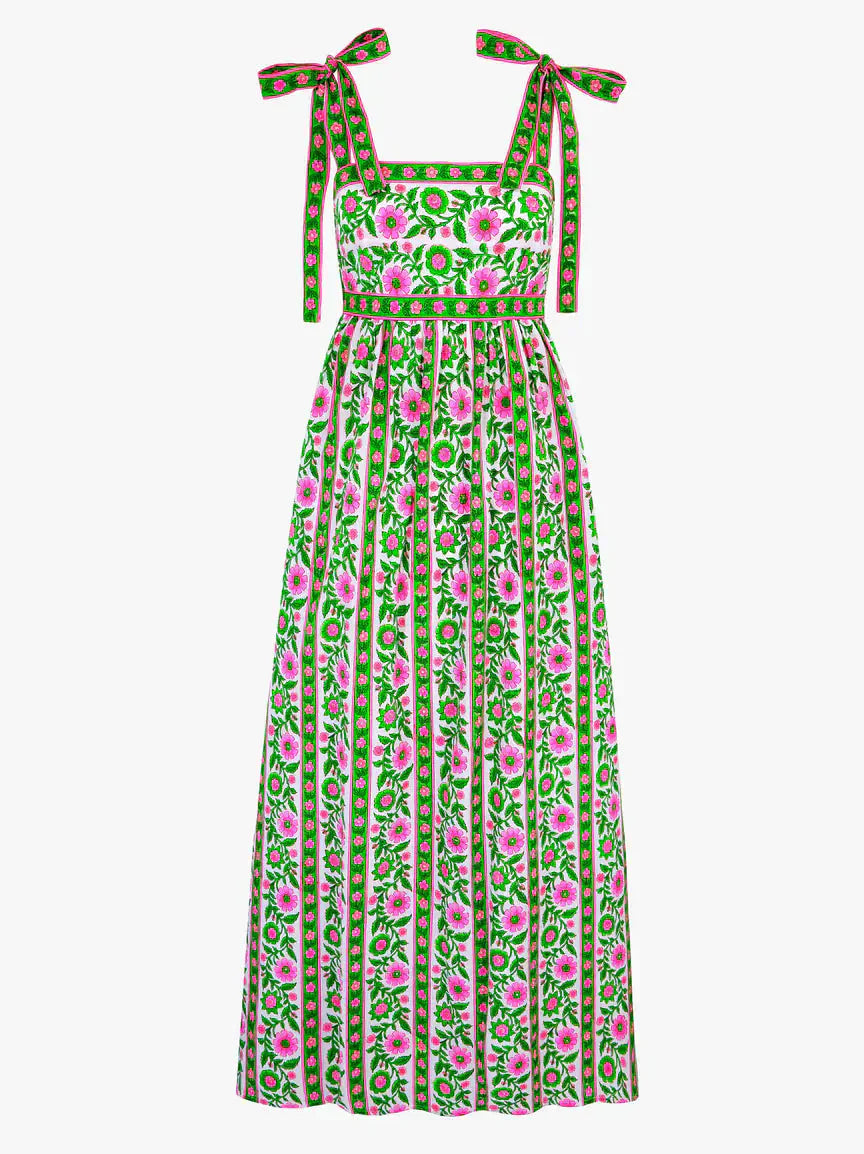 Mykonos Dress in Emerald Border