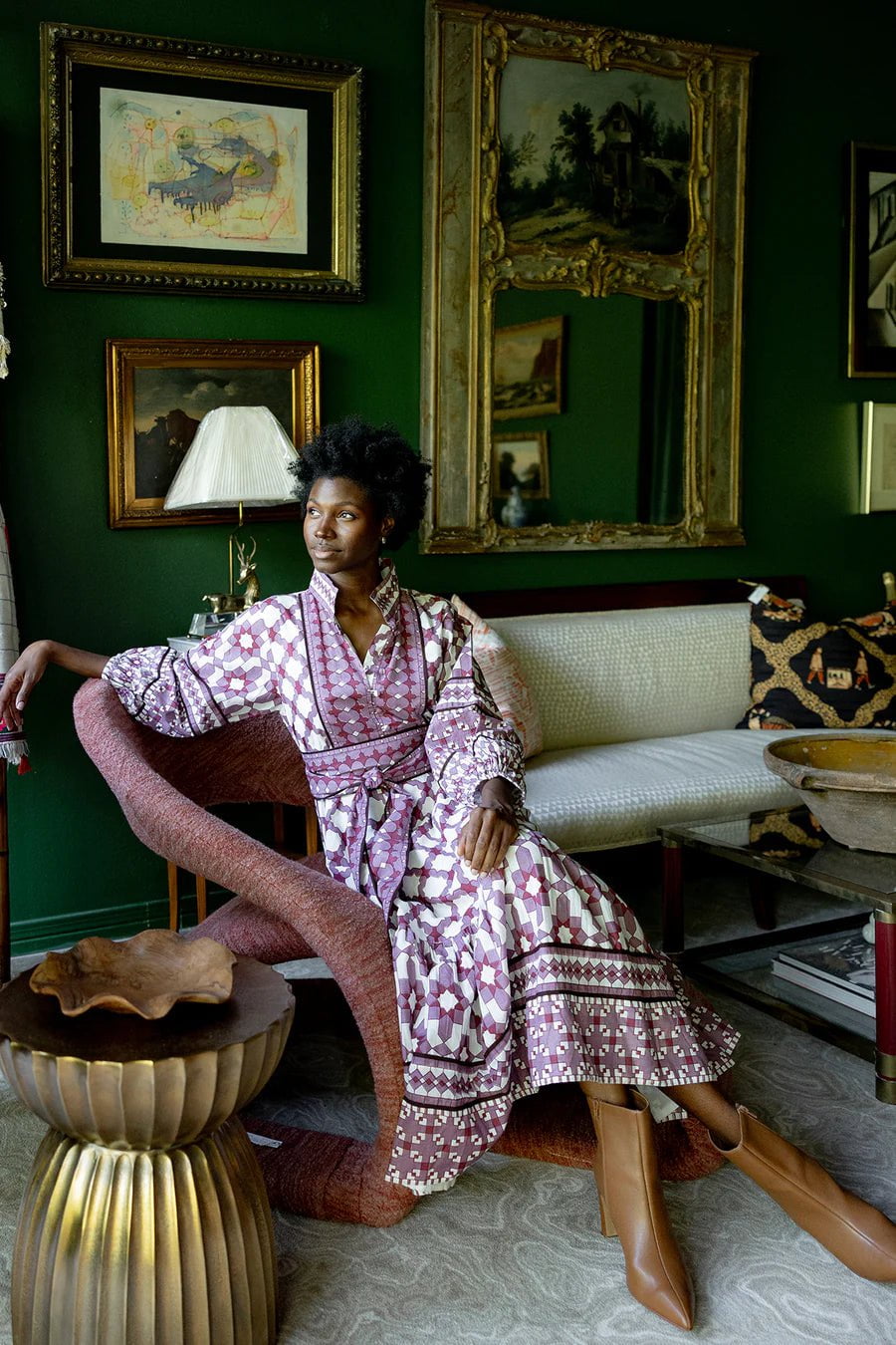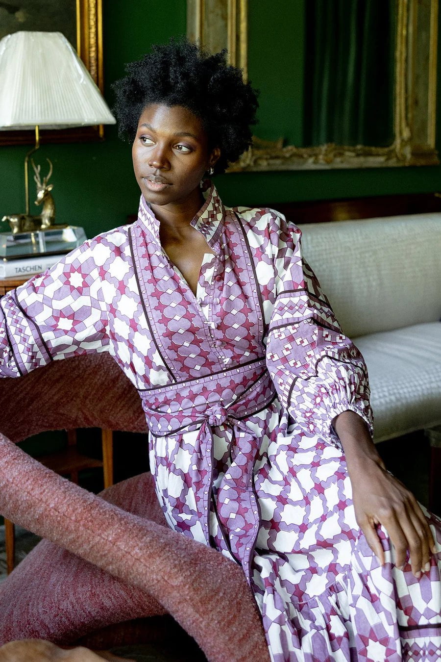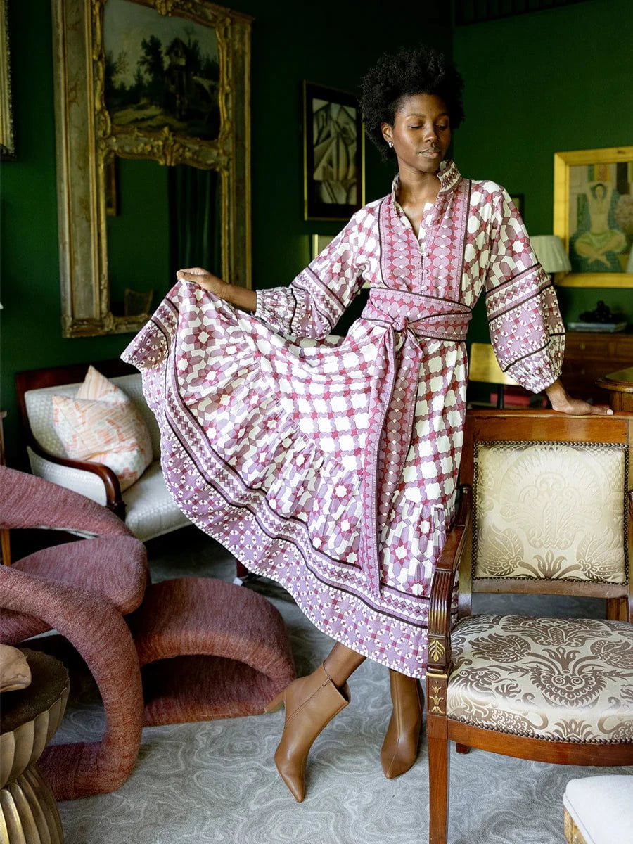 Paloma Flounce Dress in Plum & Burgundy Mosaic