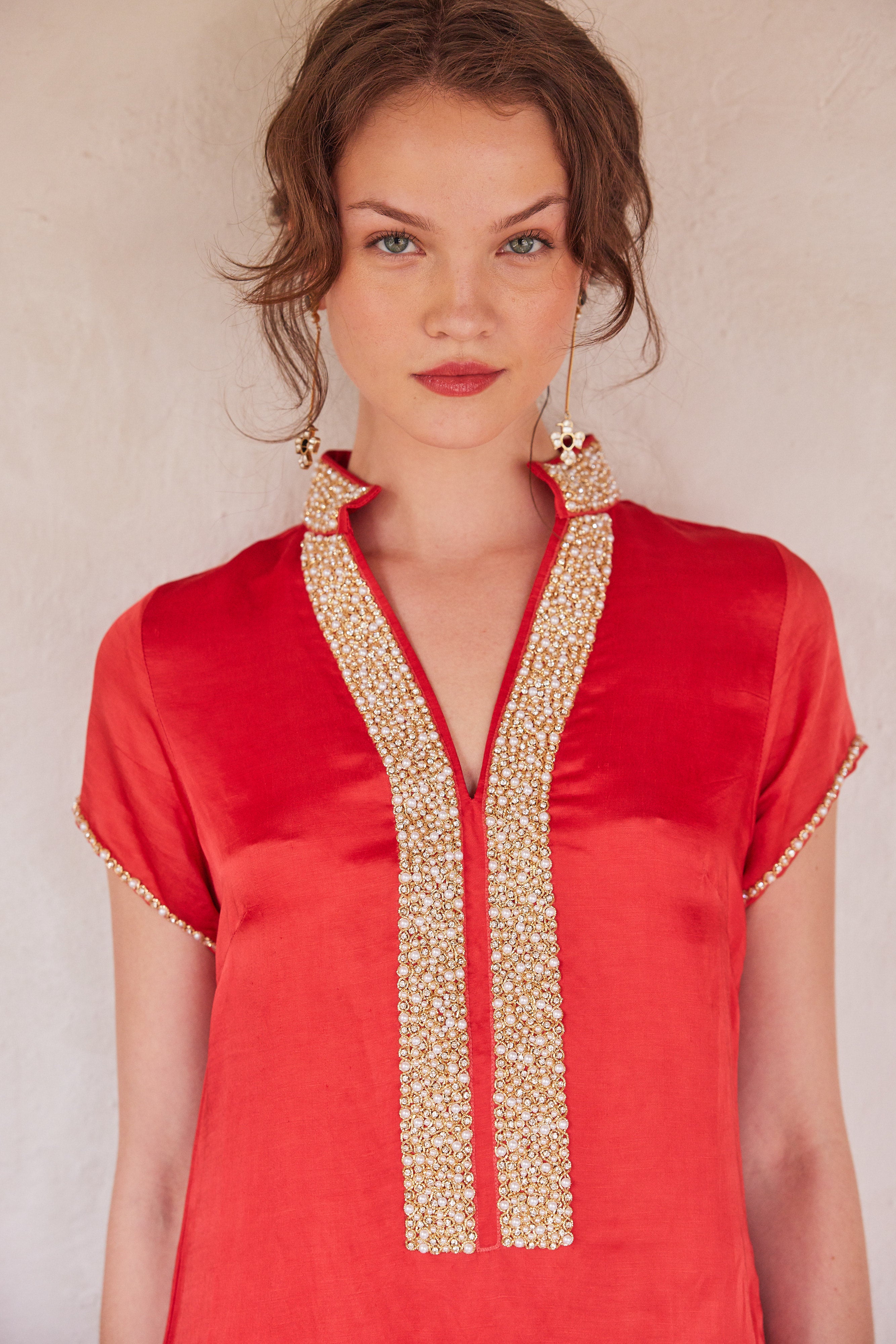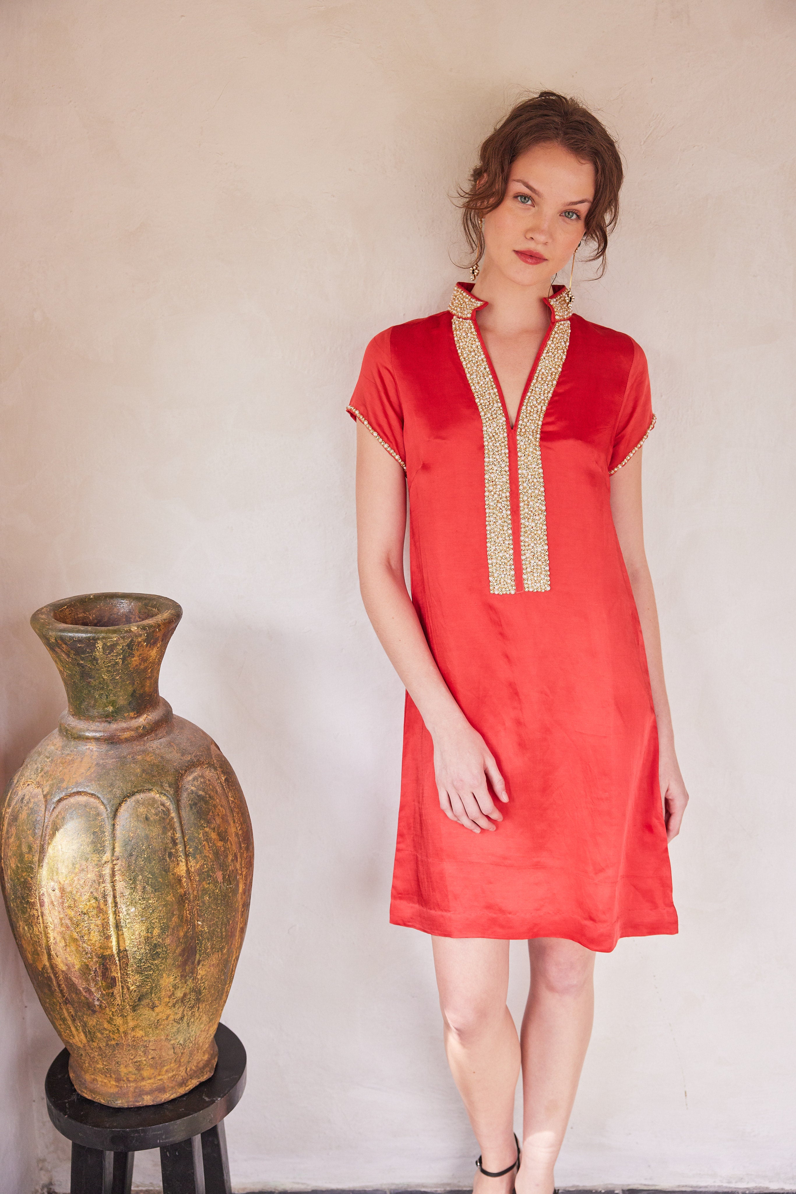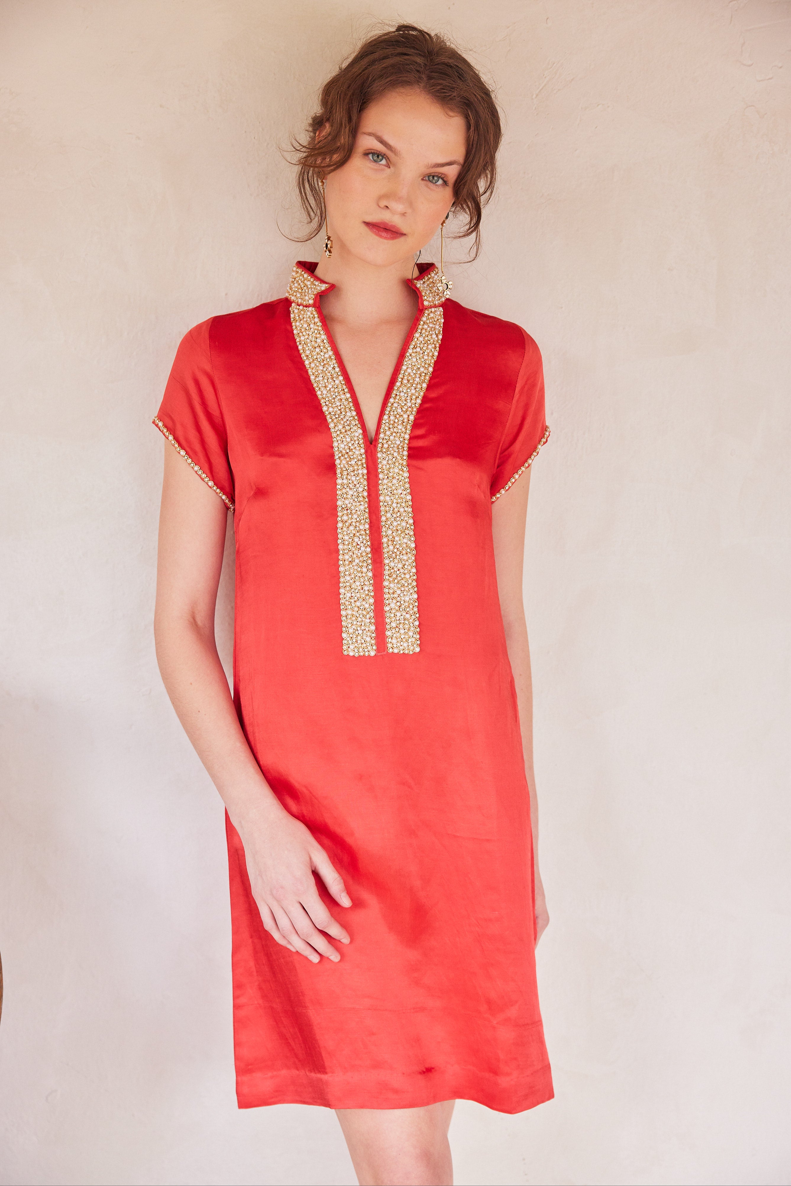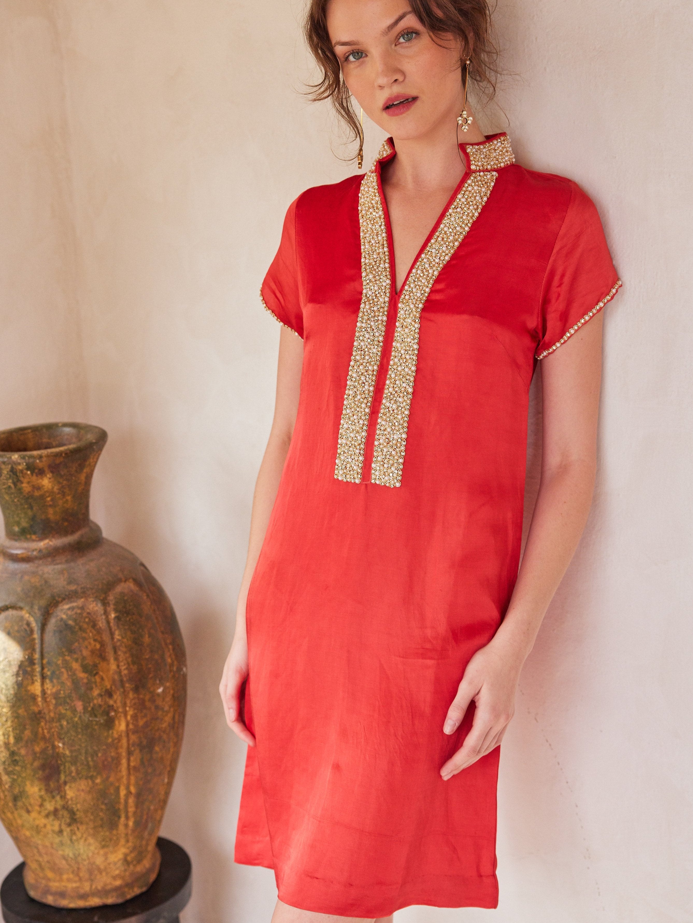 Bella Tu Dress Pearl Cap Sleeve Dress in Red