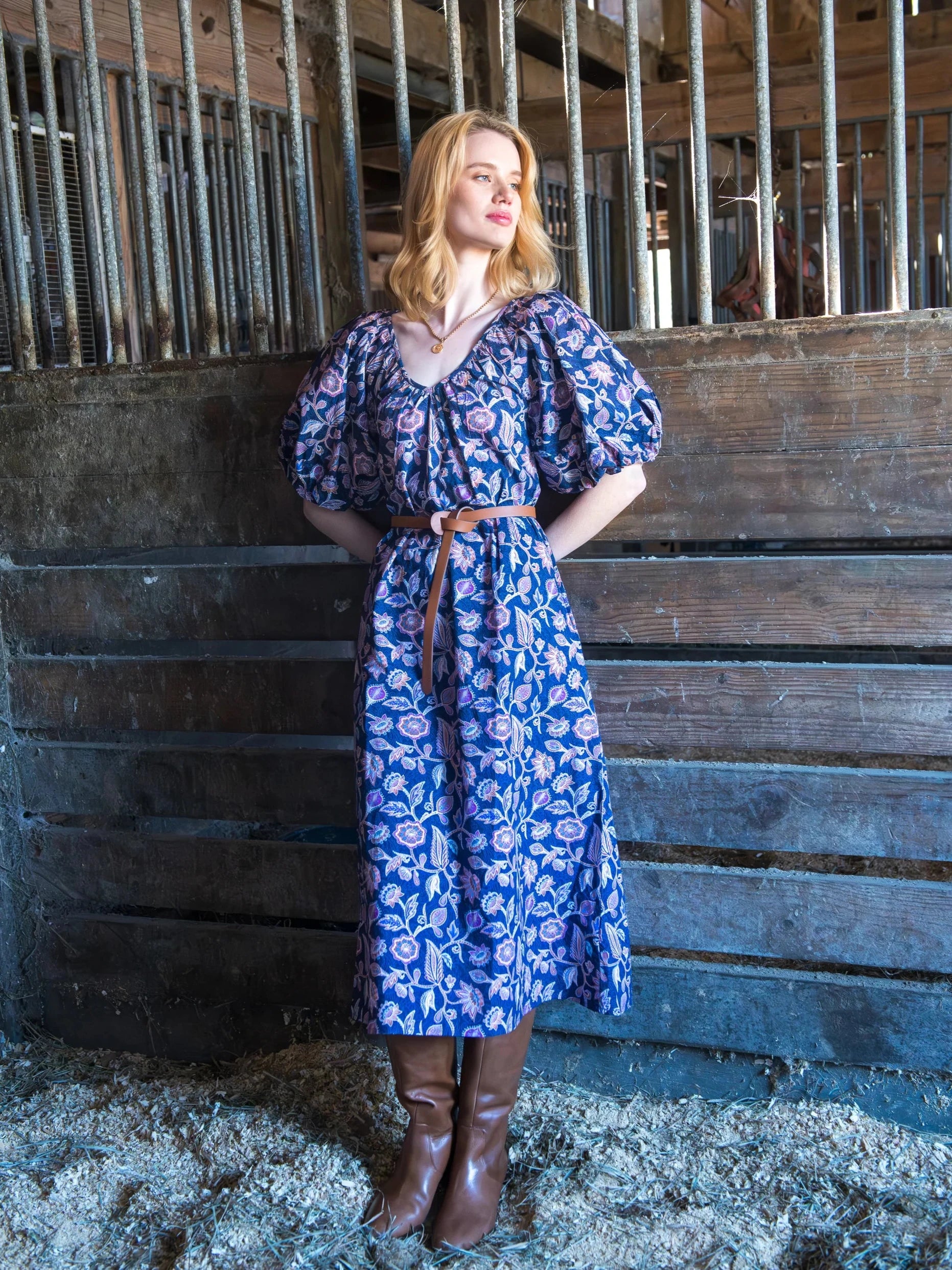 Penny Dress in Navy Cactus Flower