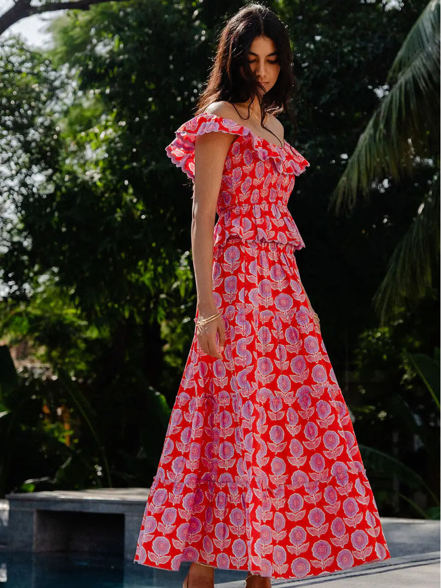The much-loved Rah Rah skirt is an essential for your holiday wardrobe. With a comfortable, smocked waistband, maxi length and flattering, tiered fit, you’ll be wearing this skirt non-stop. Screen-printed by hand in our pretty, new Perfume Dahlia buta, we love the bold shades of red and lilac in this statement print.
