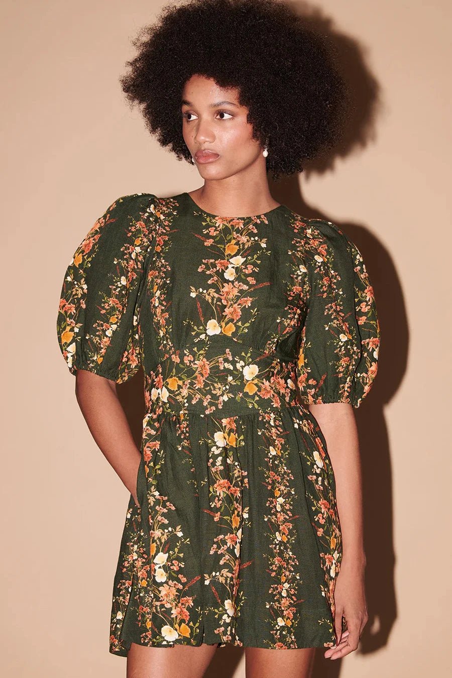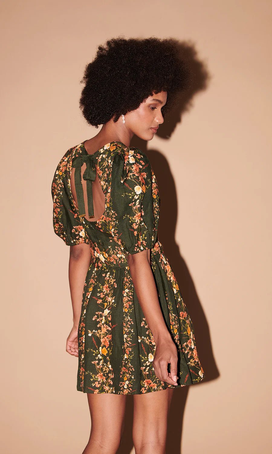 Garden party? Florals are always invited. The Roseanne mini is the fresh pick of the season. The flirty mini is covered in beautiful florals in a stripe pattern. Roseanne has adorable detail with: puff sleeves, an open back finished with a bow, and the best part- side pockets. Pair the multi colored mini with neutral heels for a dinner party ready look.