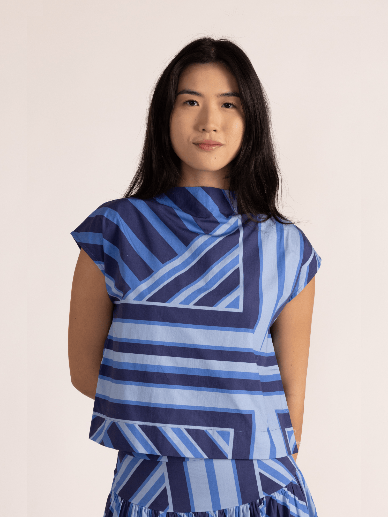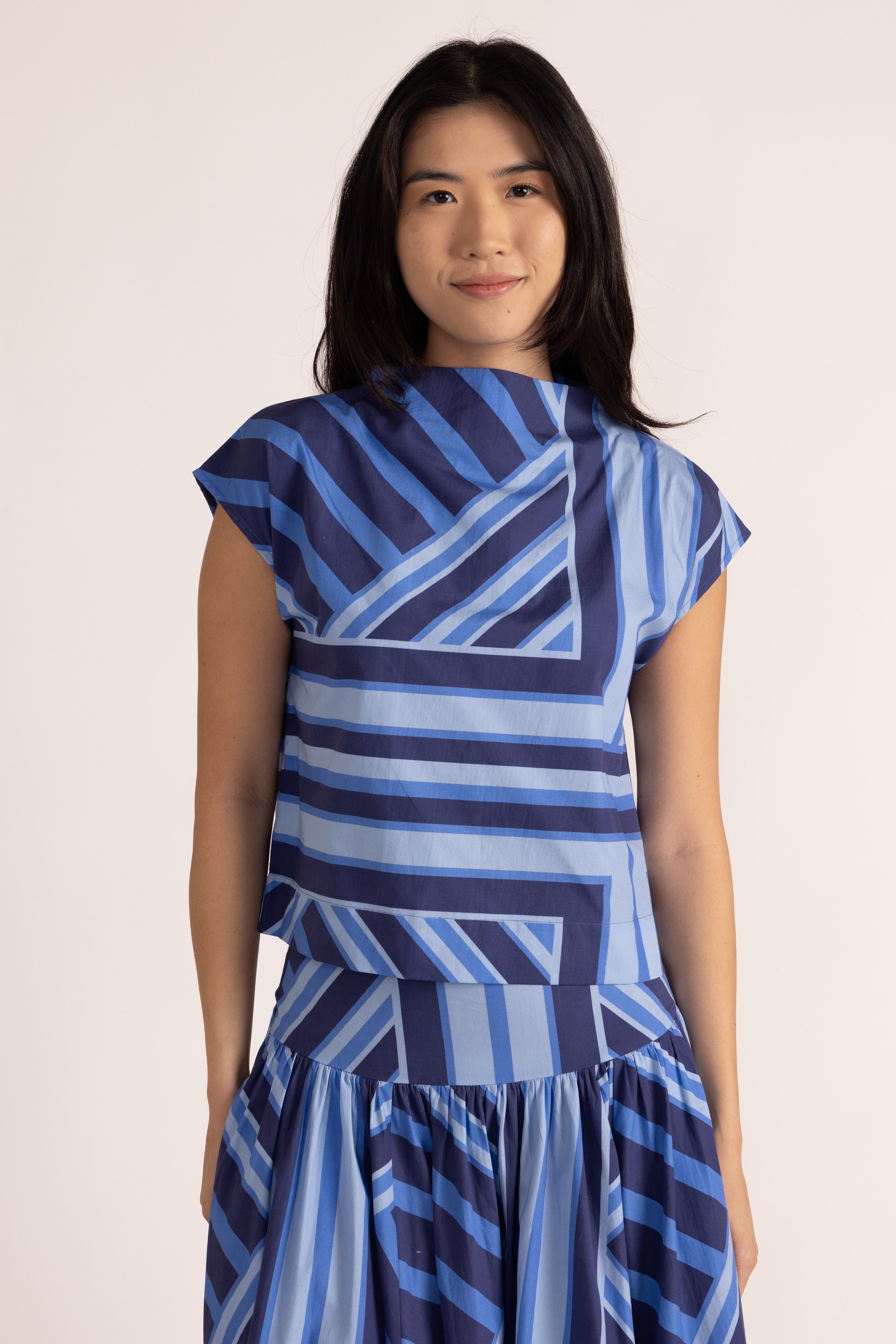 Sadie Top in Blue Geo Stripe
