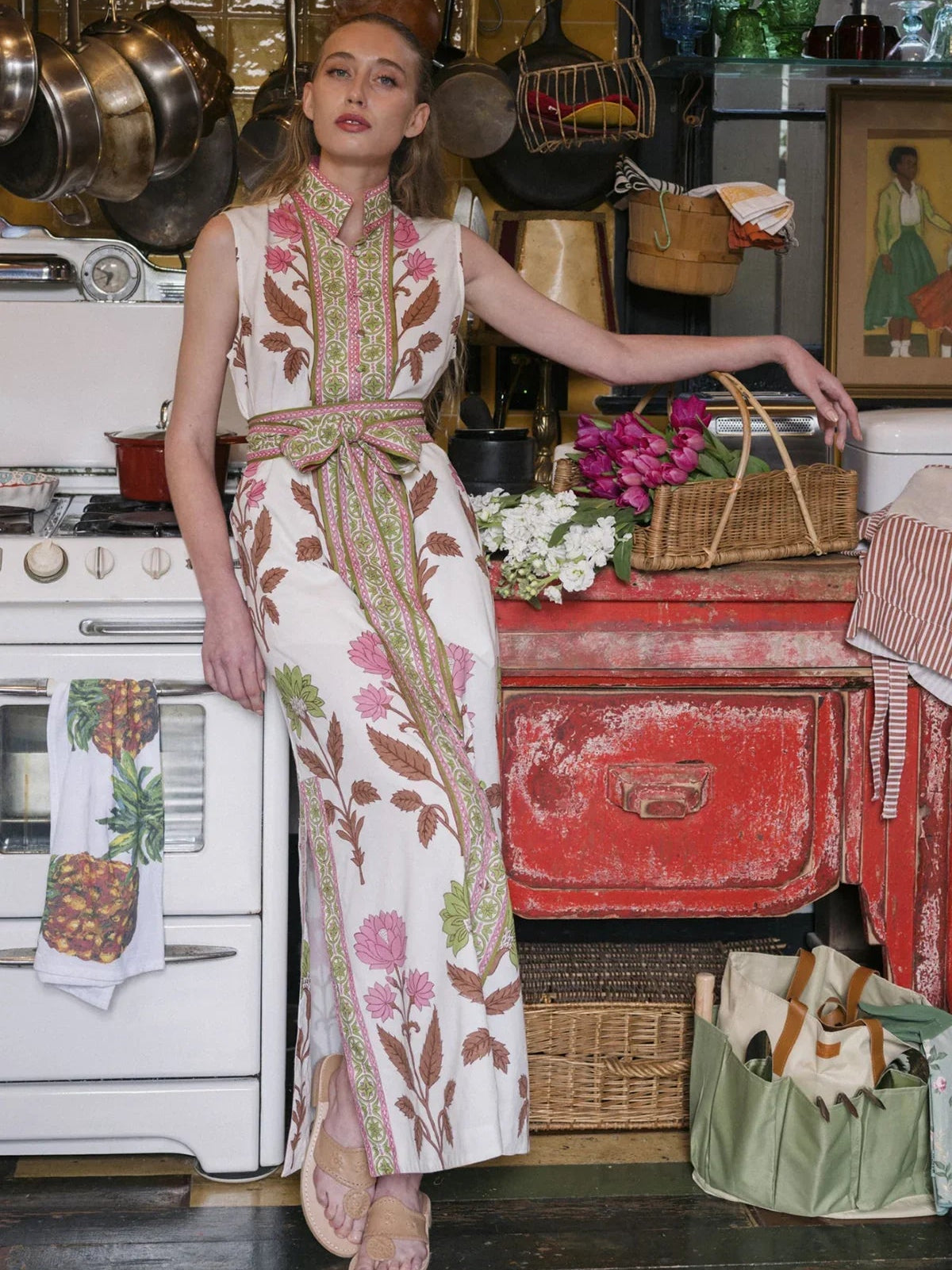 Sleeveless Marrakech Kaftan | Pink/Peridot Dahlia