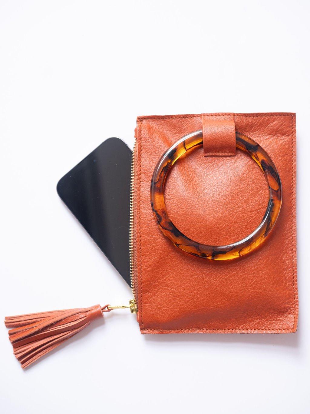 The Acrylic Ring Wristlet | Saddle