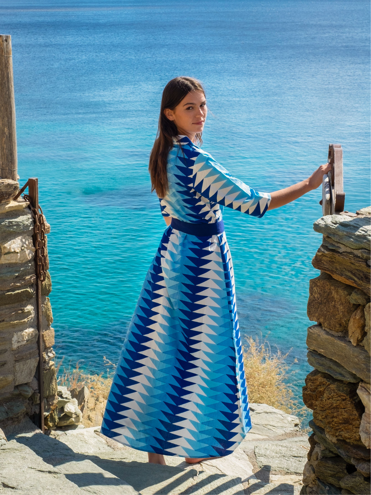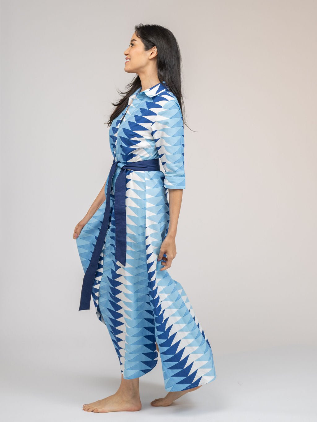 The Eloise Dress | Ocean Blockprint Bagru Triangle