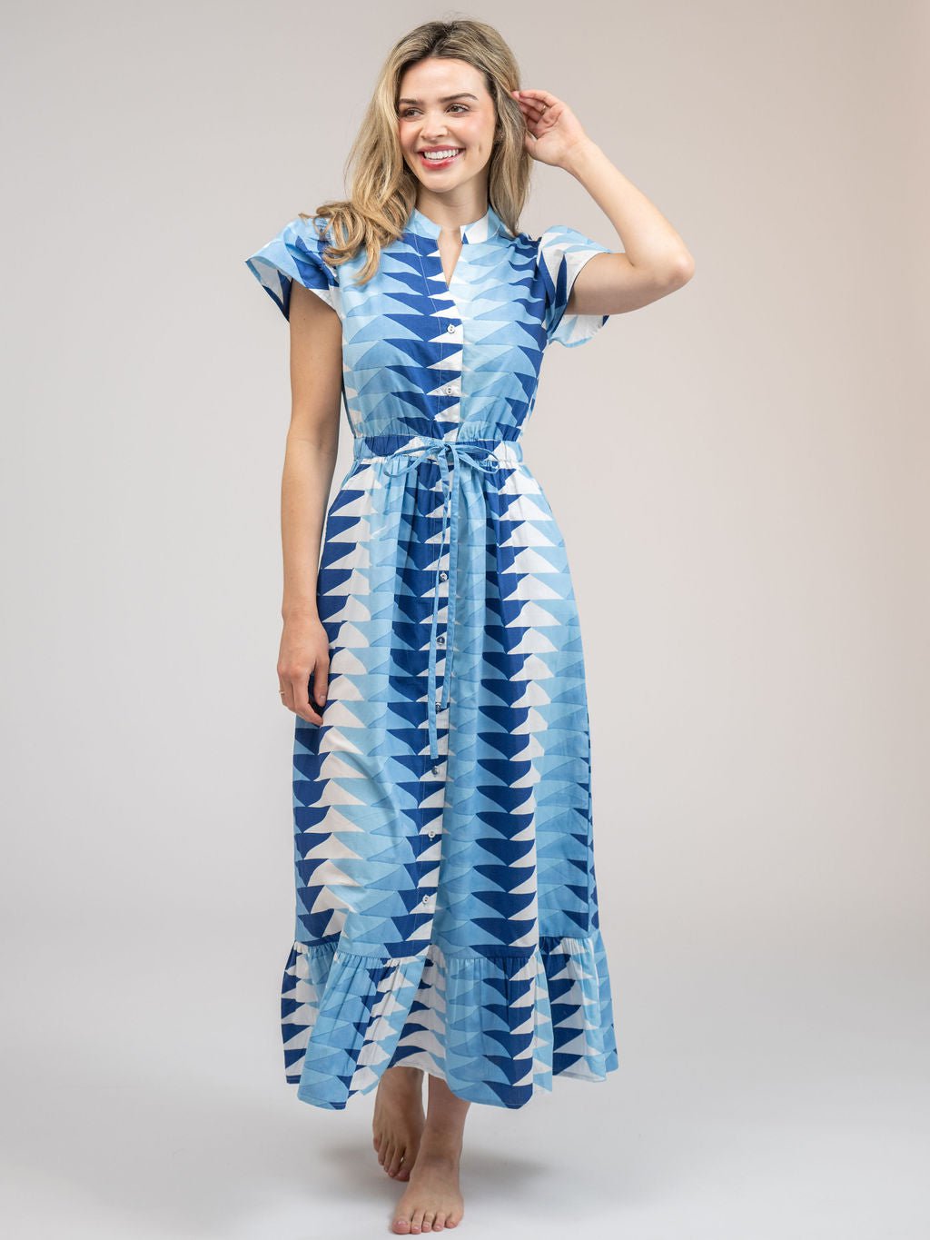 The Flutter Midi Dress | Ocean Blockprint Bagru Triangle