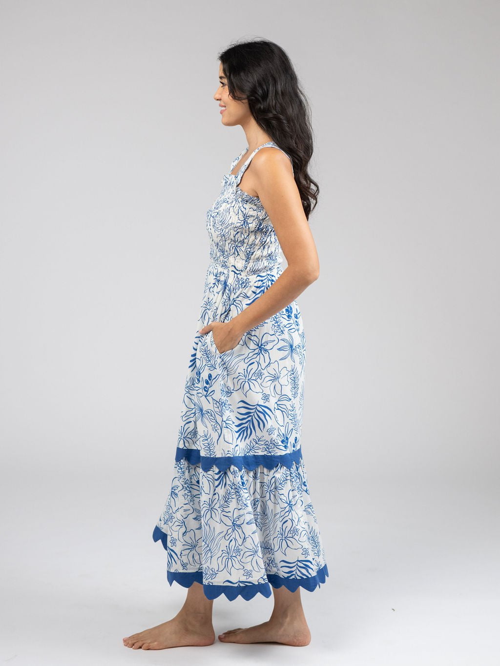 The Joey Dress | Blue Flora Sketch