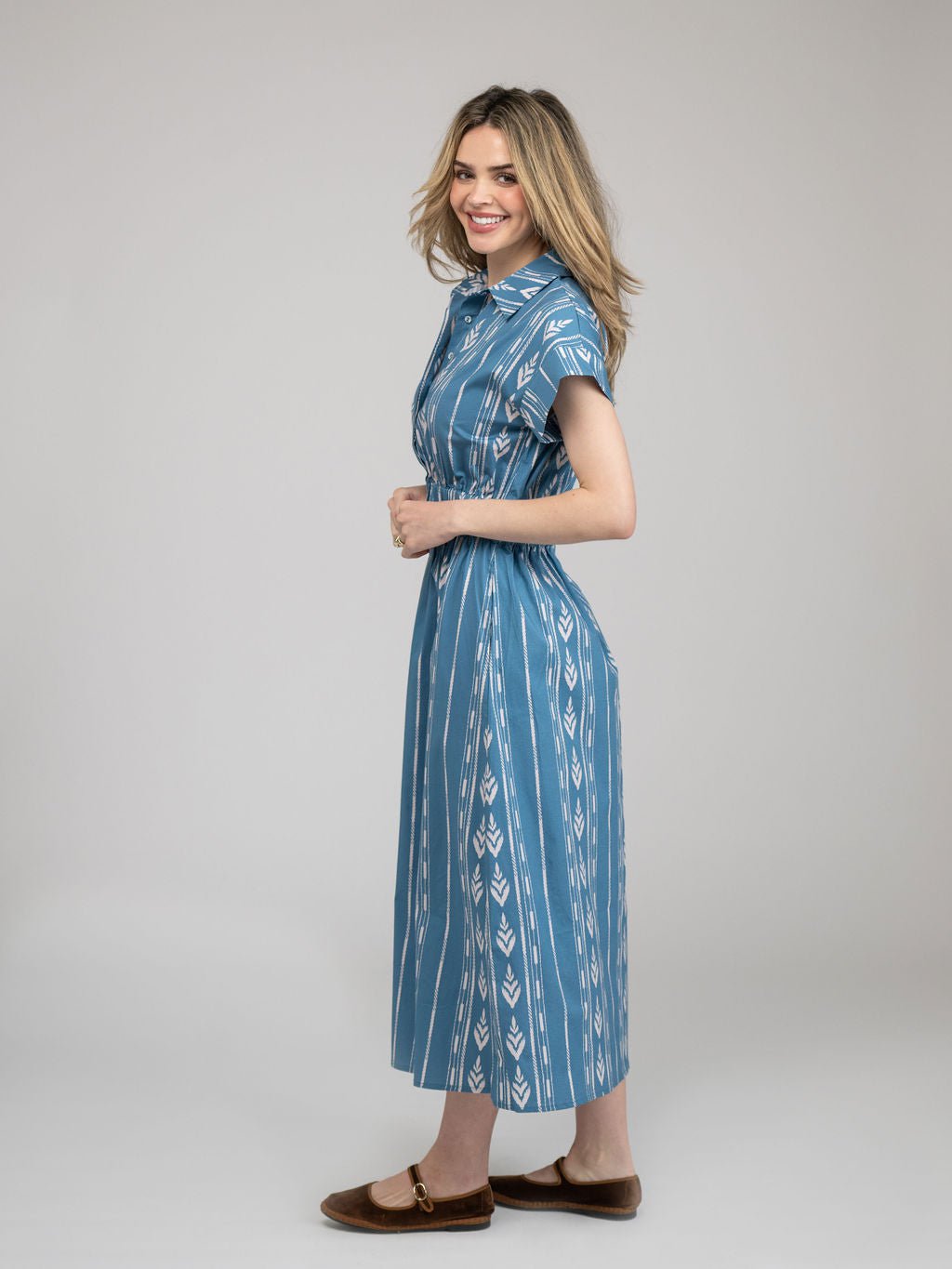 The Lisa Dress | Blue Ikat Stripe