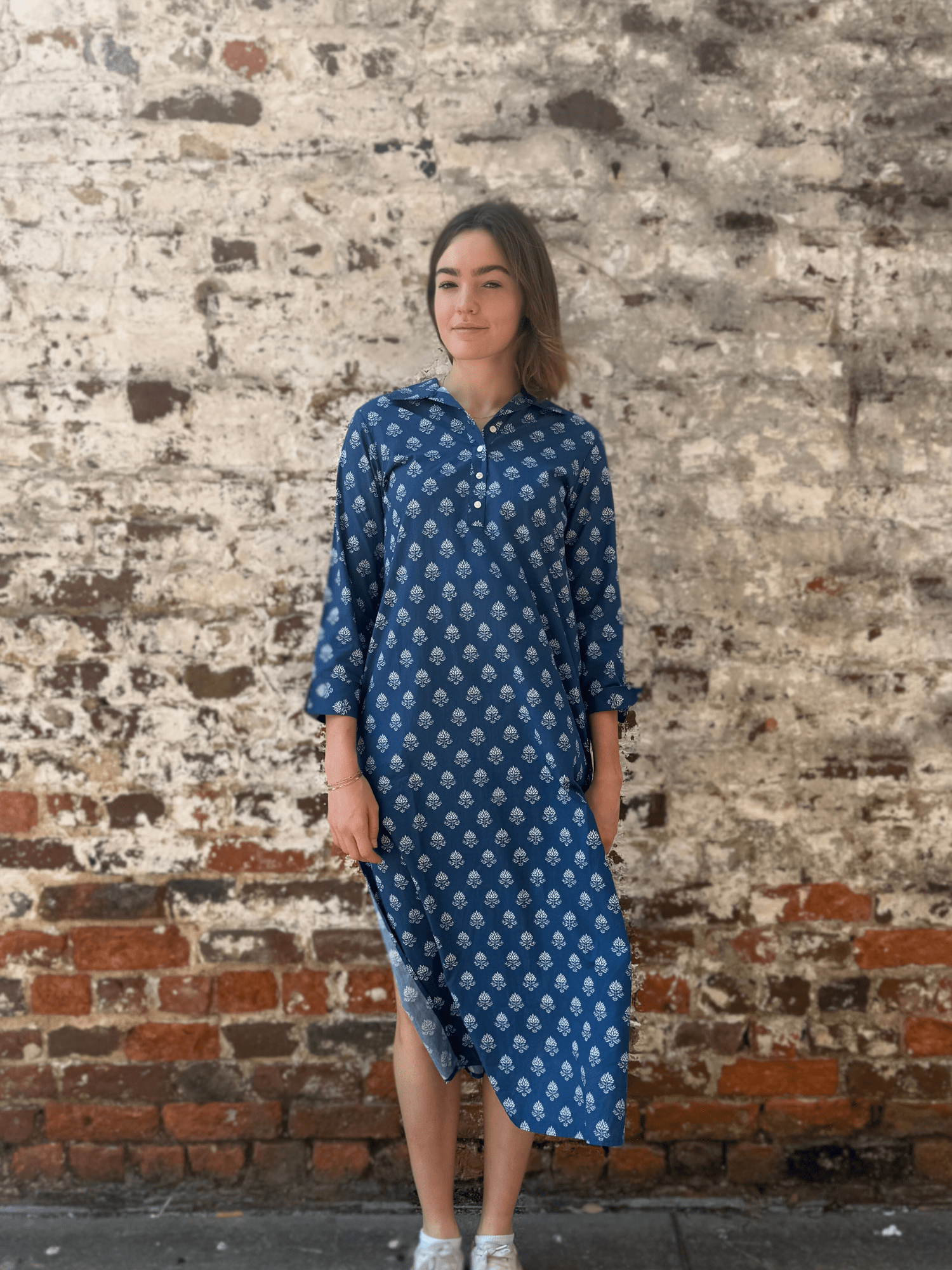 The Sara Dress in Navy Leaf